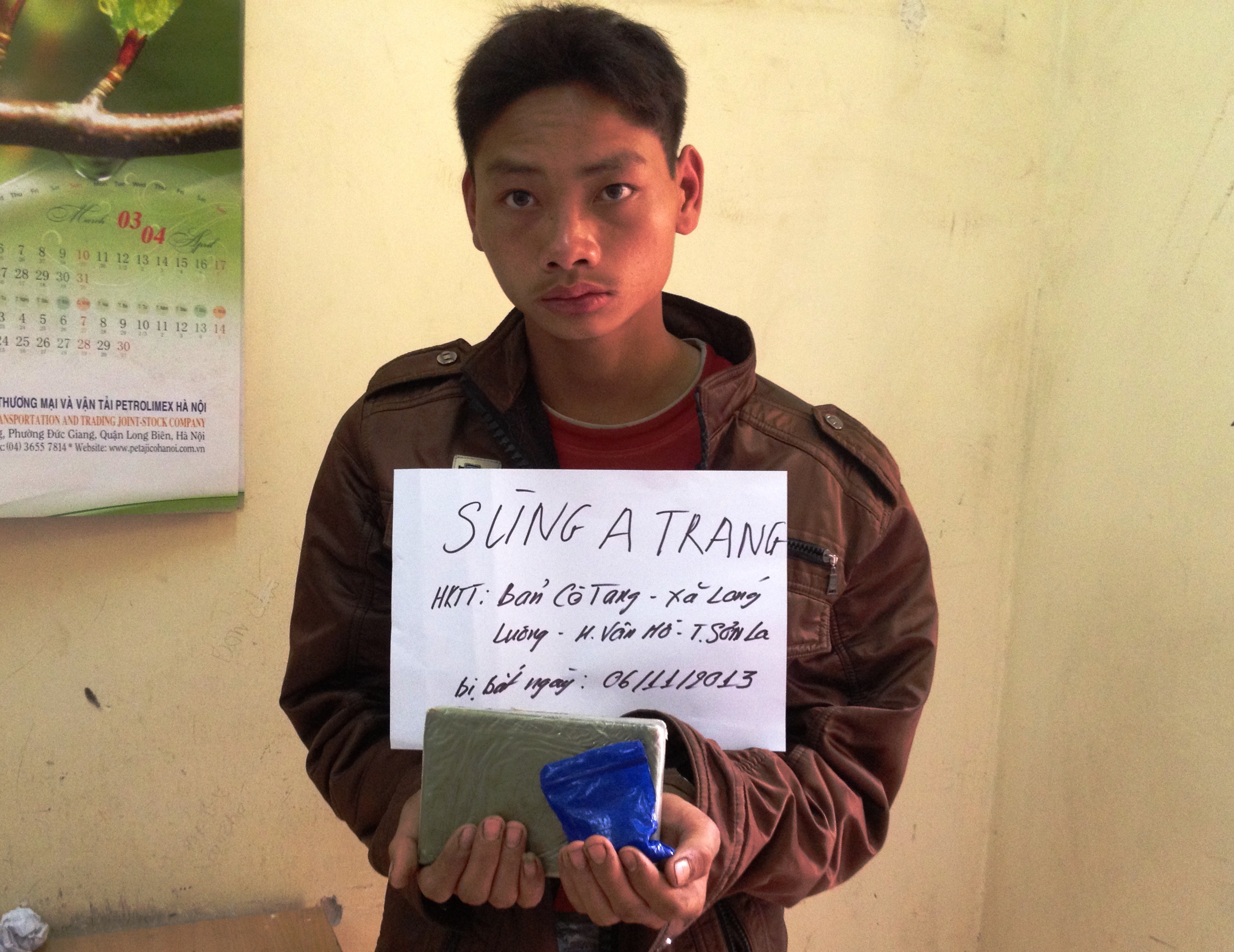 Bước đầu. Từ lời khai của Sồng A Sổ. Vận chuyên trái phép chất ma túy lớn nên Công an huyện Gia Lâm đã xác lập chuyên án mang bí số 071 để tranh đấu làm rõ. Nhà đá khẩn cấp trên người. Giữa tháng 10/2013. Vận chuyển trái phép chất ma túy từ tỉnh Sơn La về Hà Nội tiêu thụ.